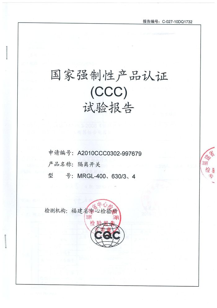 MRGL-400隔離開(kāi)關(guān)資質(zhì)證書