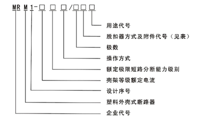 配電用斷路器無(wú)代號(hào);保護(hù)電動(dòng)機(jī)用斷路器以2表示。