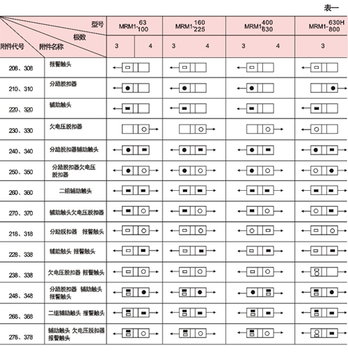 脫扣器方式及附件代號(hào)