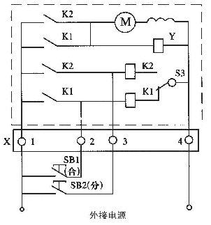 接線圖見(jiàn)下圖(虛框內(nèi)為斷路外部附件接線圖)