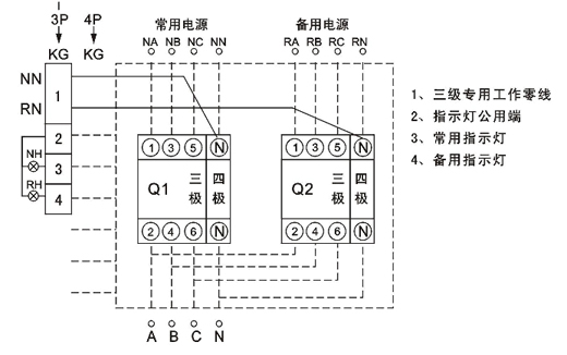 電。例:自投自復模式,常用電源(叫出現(xiàn)異常將自動轉(zhuǎn)換到備用電源(R)供電,如常用電源