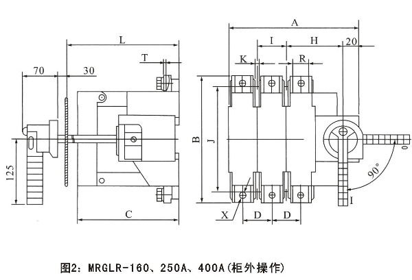 MRGLR-160、250A、400A的外形與安裝尺寸(尺寸見表)