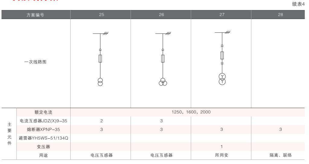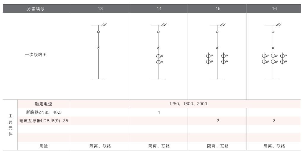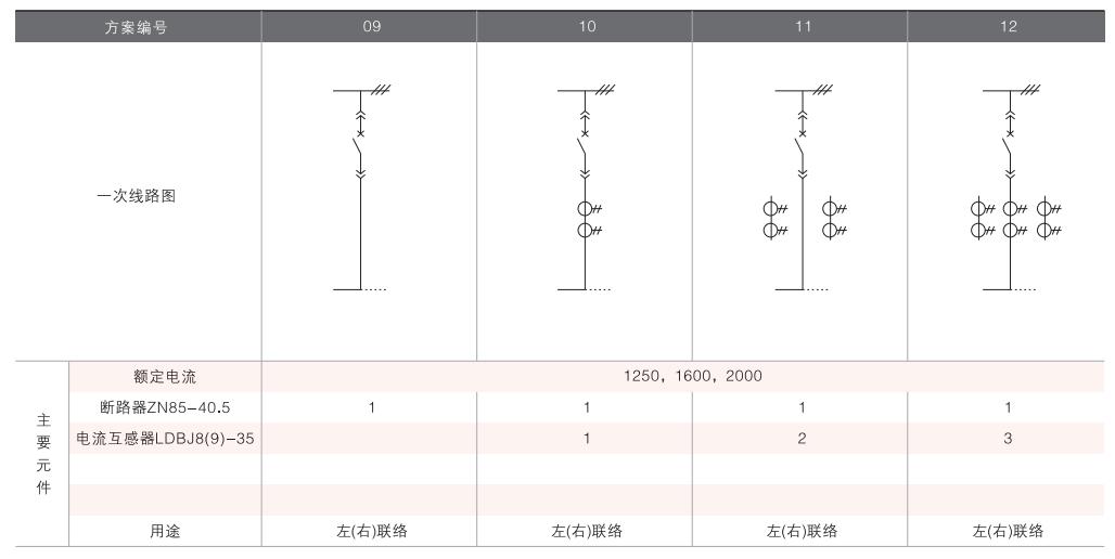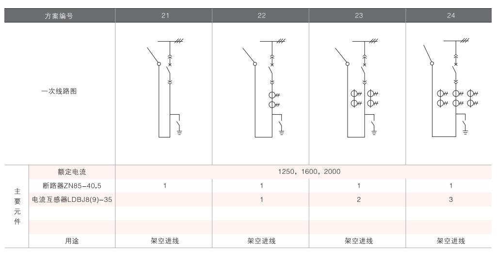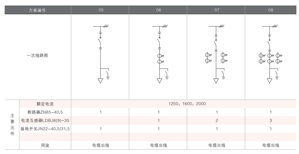 開關(guān)柜的一次接線方案有27個(gè)常用典型方案,能滿足用戶電纜進(jìn)出線、架空進(jìn)出線,聯(lián)絡(luò)級測量、保護(hù)等的需要,若有不同與現(xiàn)有方案的其他方案的需要,請與廠方協(xié)商。